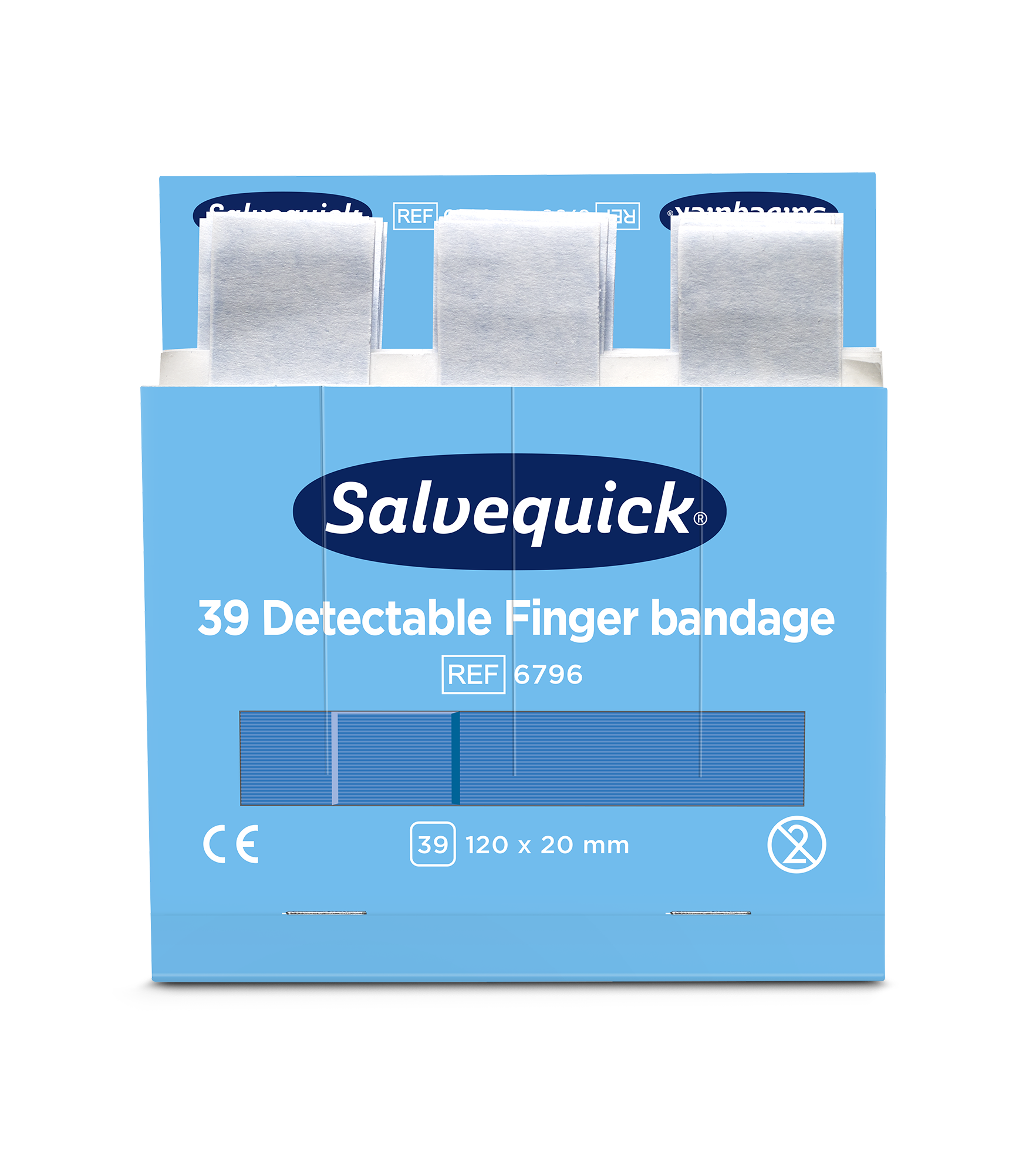 Salvequick Blue Detectable Fingertip Plasters, 39 per refill, 6 refills per box